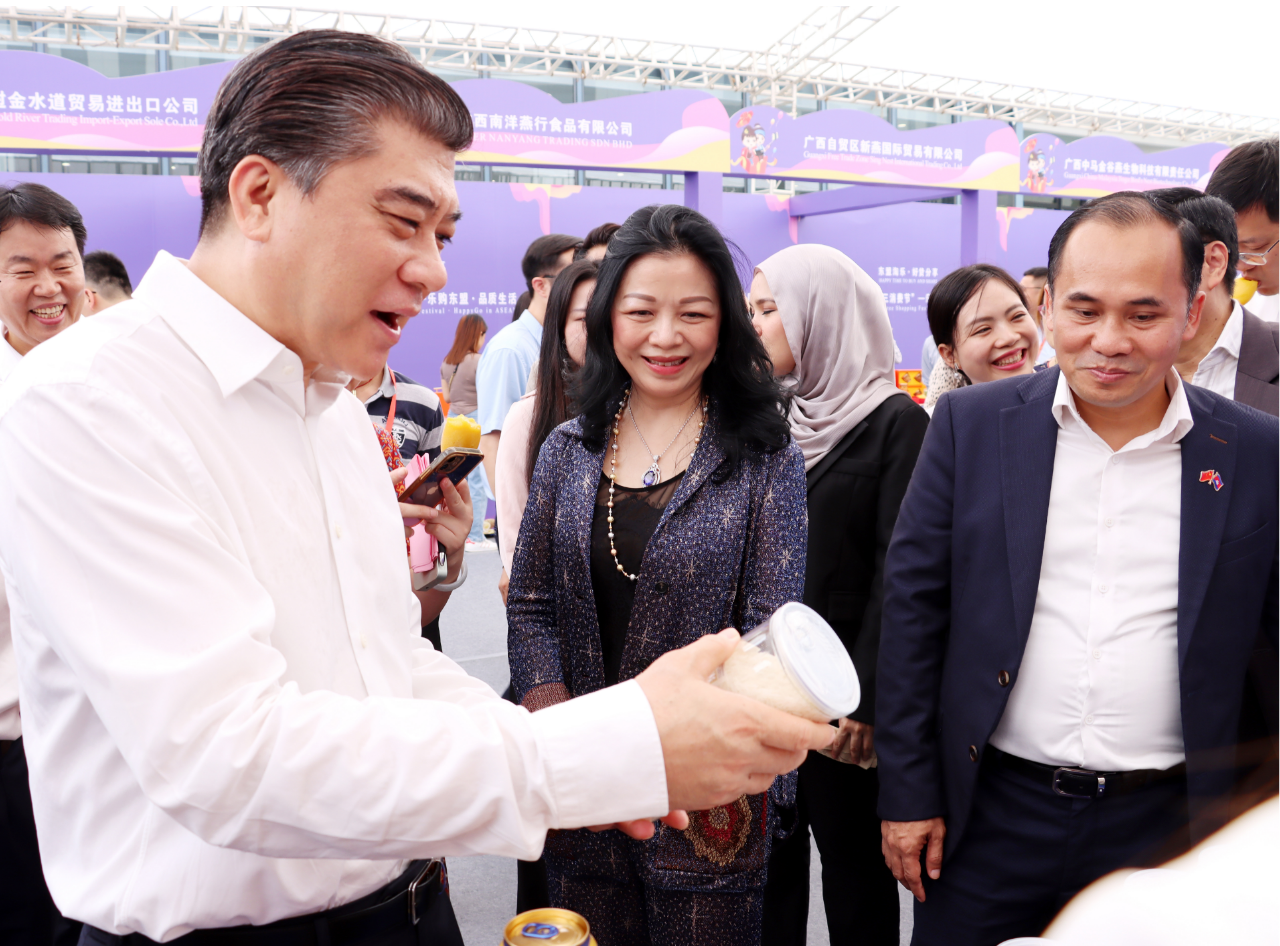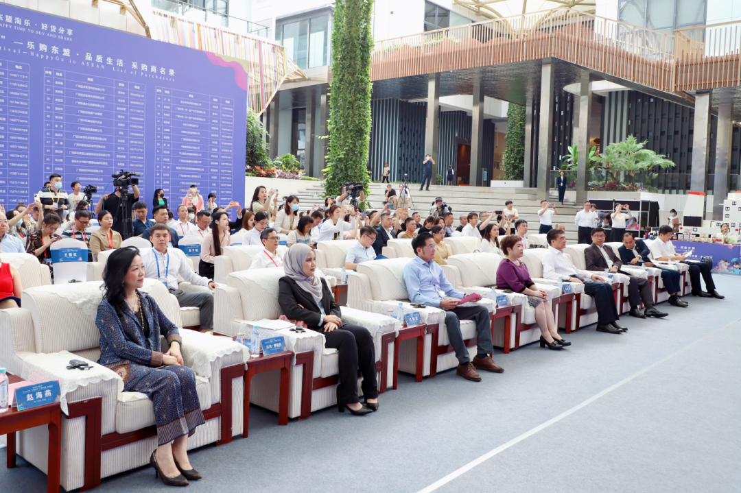 廣西壯族自治區(qū)商務(wù)廳黨組書記、廳長楊春庭,柬埔寨王國駐南寧總領(lǐng)事館總領(lǐng)事唐肅安,馬來西亞駐南寧總領(lǐng)事館副領(lǐng)事法拉·伊麗莎,緬甸聯(lián)邦共和國駐南寧總領(lǐng)事館總領(lǐng)事覺梭登,泰國駐南寧總領(lǐng)事館總領(lǐng)事彬嘉瑪·塔維她雅濃,越南社會主義共和國駐南寧總領(lǐng)事館總領(lǐng)事杜南忠,中國—東盟特色商品匯聚中心董事長趙海燕等出席了本次活動。