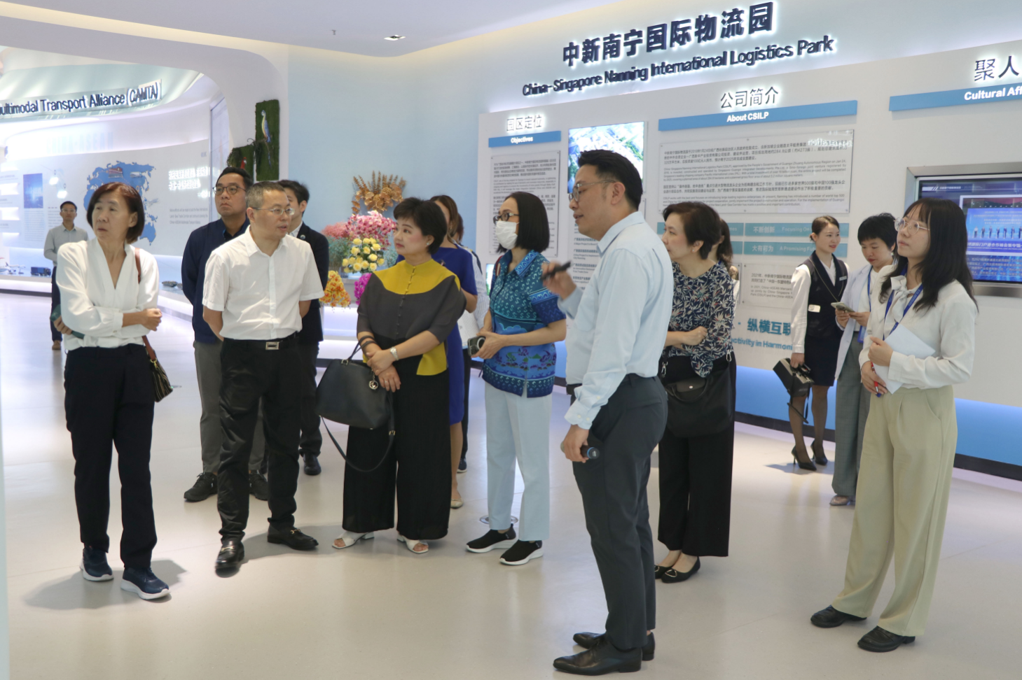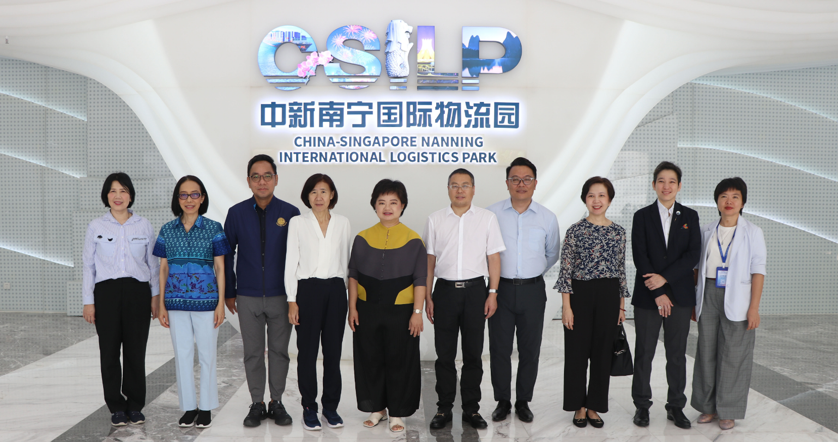 2023年6月30日,泰國(guó)商業(yè)部巡視組組長(zhǎng)(副司級(jí))素南塔.剛婉古吉女士一行到中新南寧國(guó)際物流園(以下簡(jiǎn)稱“中新物流園”)、中國(guó)—東盟特色商品匯聚中心(以下簡(jiǎn)稱“匯聚中心”)考察,就進(jìn)一步提升中泰兩國(guó)在經(jīng)貿(mào)領(lǐng)域的合作與交流展開(kāi)探討。廣西新中產(chǎn)業(yè)投資有限公司副總經(jīng)理商紅熱情接待了巡視組一行。