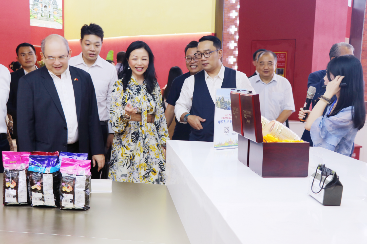 利德萬充分認(rèn)可匯聚中心在中國與東盟國家經(jīng)貿(mào)往來中扮演的重要角色,同時對于匯聚中心印尼展館充分展示印尼多元文化與特色產(chǎn)品的設(shè)計理念感到非常欣喜,并對此給予了九分的高度評價。利德萬表示這是第一次到訪匯聚中心,他非常認(rèn)同匯聚中心搭建的線上線下經(jīng)貿(mào)往來一站式平臺,在考察時就立刻想到將西爪哇省非常有名的咖啡豆入駐匯聚中心,并以此作為切入點,與匯聚中心進(jìn)行更多合作,未來也希望借助匯聚中心平臺幫助更多印尼的商家和特色產(chǎn)品進(jìn)入中國市場。他強(qiáng)調(diào),印尼和中國是志同道合的同路人、好伙伴,西爪哇省愿用好區(qū)域全面經(jīng)濟(jì)伙伴關(guān)系協(xié)定實施等重大機(jī)遇,進(jìn)一步加強(qiáng)同廣西同匯聚中心商貿(mào)等領(lǐng)域的務(wù)實合作。
