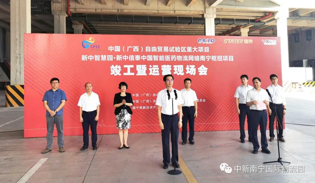 8月28日上午,中新南寧國際物流園新中信泰中國智能醫(yī)藥物流網(wǎng)絡(luò)南寧樞紐項目和新中智慧園竣工暨運營現(xiàn)場會在南寧順利舉行。自治區(qū)人大常委會副主任、黨組副書記,廣西自貿(mào)試驗區(qū)建設(shè)指揮部指揮長張曉欽出席現(xiàn)場會,并宣布項目竣工暨運營。自治區(qū)商務(wù)廳、南寧市政府、南寧五象新區(qū)管委會、南寧高新區(qū)管委會、良慶區(qū)政府、南寧市有關(guān)部門、各企業(yè)代表約120人參加現(xiàn)場會。