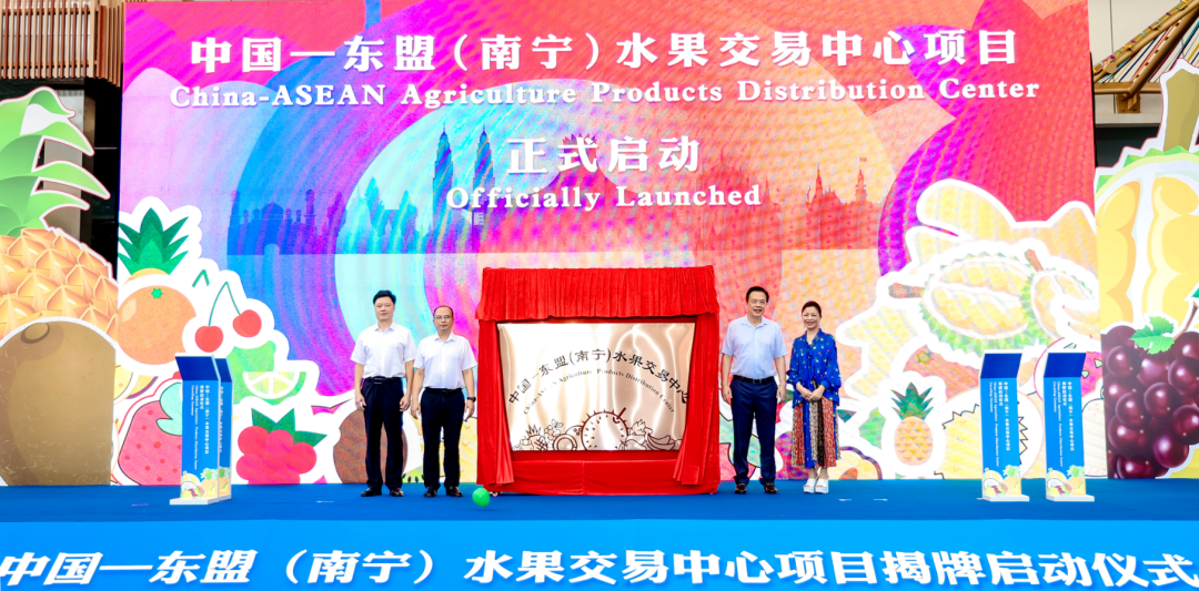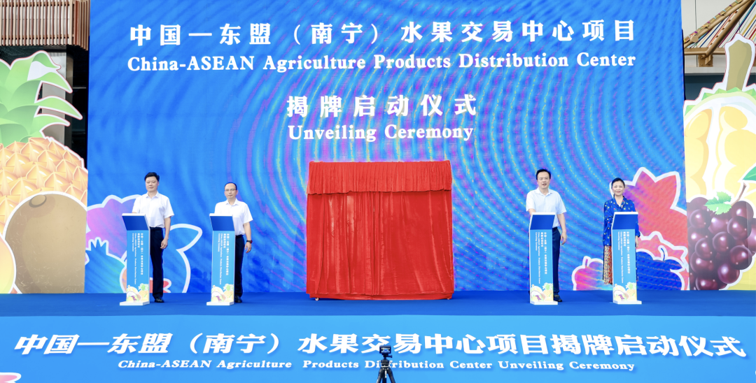 東盟好水果,新鮮零距離。2023年8月27日上午,中國(guó)—東盟(南寧)水果交易中心項(xiàng)目揭牌啟動(dòng)儀式在中國(guó)—東盟特色商品匯聚中心隆重舉行。廣西壯族自治區(qū)商務(wù)廳黨組成員、副廳長(zhǎng)粟堅(jiān),廣西壯族自治區(qū)南寧市委常委、南寧市人民政府副市長(zhǎng)、黨組副書記陳竑,廣西壯族自治區(qū)南寧高新技術(shù)產(chǎn)業(yè)開發(fā)區(qū)管理委員會(huì)黨工委書記李耕,廣西新中產(chǎn)業(yè)投資有限公司、中國(guó)—東盟特色商品匯聚中心董事長(zhǎng)趙海燕等出席,廣西壯族自治區(qū)南寧市人民政府副秘書長(zhǎng)劉桂發(fā)主持活動(dòng)。