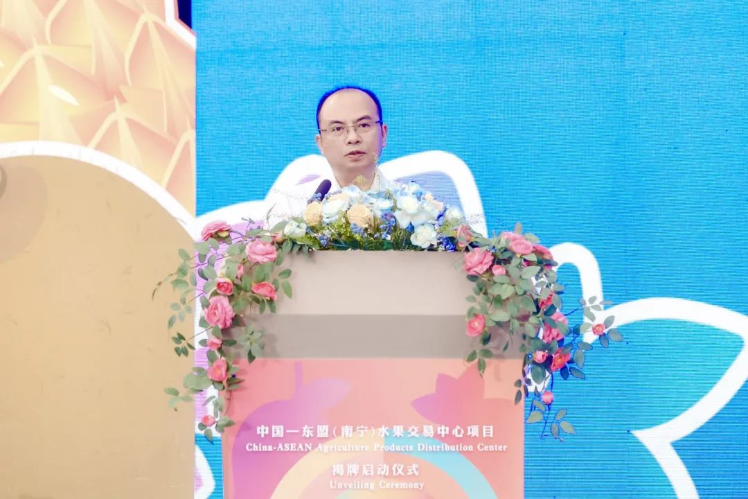 粟堅(jiān)副廳長(zhǎng)在致辭中表示,廣西壯族自治區(qū)政府高度重視中國(guó)—東盟水果交易中心建設(shè),并將其列為中國(guó)—東盟產(chǎn)業(yè)合作區(qū)的前期成果性項(xiàng)目。通過推動(dòng)在崇左、南寧、欽州三地建設(shè)中國(guó)—東盟水果交易中心,圍繞“買全國(guó)、賣東盟,買東盟,賣全國(guó)”的目標(biāo),致力于打造面向全國(guó)和東盟各國(guó)的水果分撥中心、交易中心、加工中心,實(shí)現(xiàn)中國(guó)—東盟水果交易、展示、結(jié)算、倉(cāng)儲(chǔ)、加工、物流、通關(guān)的高度集聚。他強(qiáng)調(diào),要把中國(guó)—東盟水果交易中心建設(shè)成為國(guó)內(nèi)國(guó)際雙循環(huán)的重要節(jié)點(diǎn)樞紐,更好的服務(wù)“一帶一路”和中國(guó)—東盟自貿(mào)區(qū)建設(shè)。