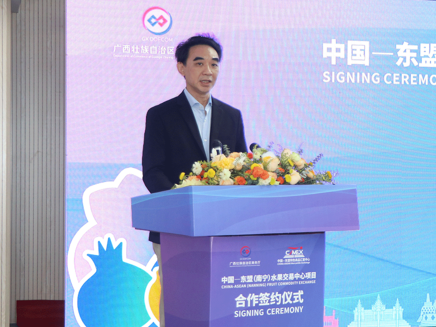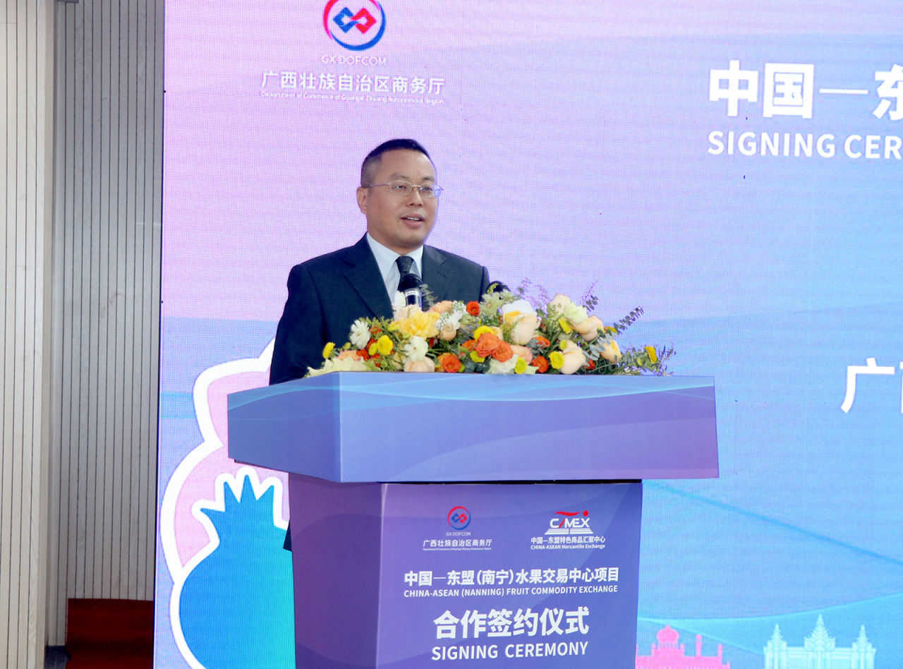 2023年11月9日,中國—東盟(南寧)水果交易中心項(xiàng)目合作簽約儀式在廣西壯族自治區(qū)商務(wù)廳舉行,標(biāo)志著項(xiàng)目合作取得實(shí)質(zhì)性進(jìn)展、項(xiàng)目建設(shè)步入新的發(fā)展階段。