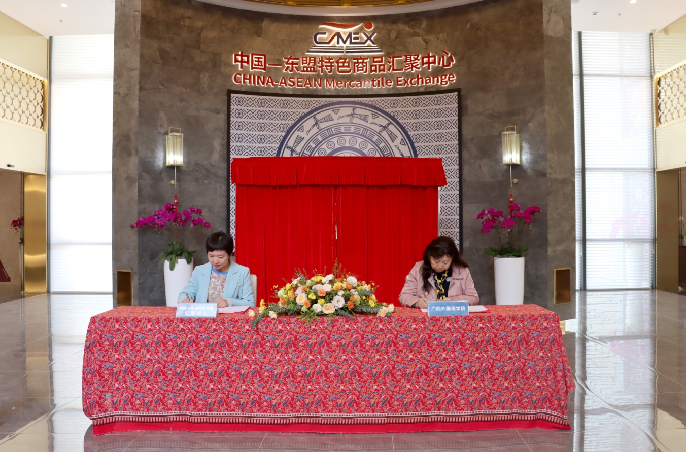 2023年12月7日,中國(guó)—東盟特色商品匯聚中心(簡(jiǎn)稱“匯聚中心”)與廣西外國(guó)語(yǔ)學(xué)院舉行合作共建校外實(shí)習(xí)實(shí)踐教育基地簽約和揭牌儀式。廣西外國(guó)語(yǔ)學(xué)院校長(zhǎng)蒙麗珍、中國(guó)—東盟特色商品匯聚中心副總經(jīng)理盧春梅等出席了此次儀式。
