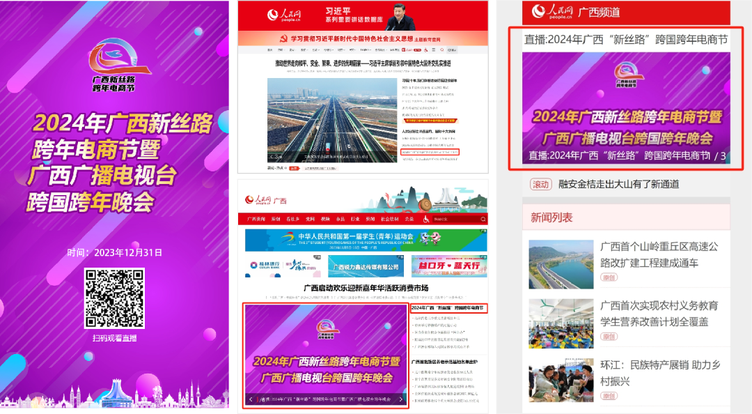 晚會通過廣西廣播電視臺直播,信號覆蓋228個國家及地區(qū),老撾國家電視臺、柬埔寨國家電視臺、越南數(shù)字電視臺、緬甸國家廣播電視臺等海外媒體平臺以及中央廣播電視總臺、新華社、人民網(wǎng)、廣西日報、廣西廣播電視臺、今日頭條、抖音等國內(nèi)主流媒體構(gòu)建宣傳報道“云平臺”,形成融媒體矩陣進(jìn)行直播或宣發(fā),持續(xù)制造熱點話題,提高全網(wǎng)總關(guān)注度,打造“廣西最火跨年夜”。