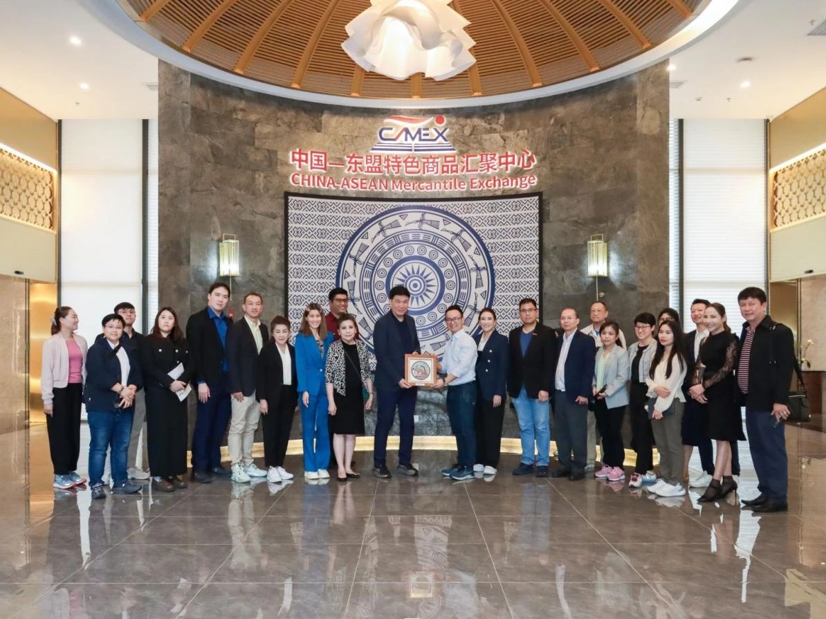 2024年6月6日,泰國工業(yè)聯(lián)合會副主席維迪·左瓦塔那率由泰國地方政府部門、商協(xié)會及企業(yè)家組成的考察團到中國—東盟特色商品匯聚中心(簡稱“匯聚中心”)參觀交流。中國—東盟特色商品匯聚中心總經(jīng)理林哲宇熱情接待了考察團一行。