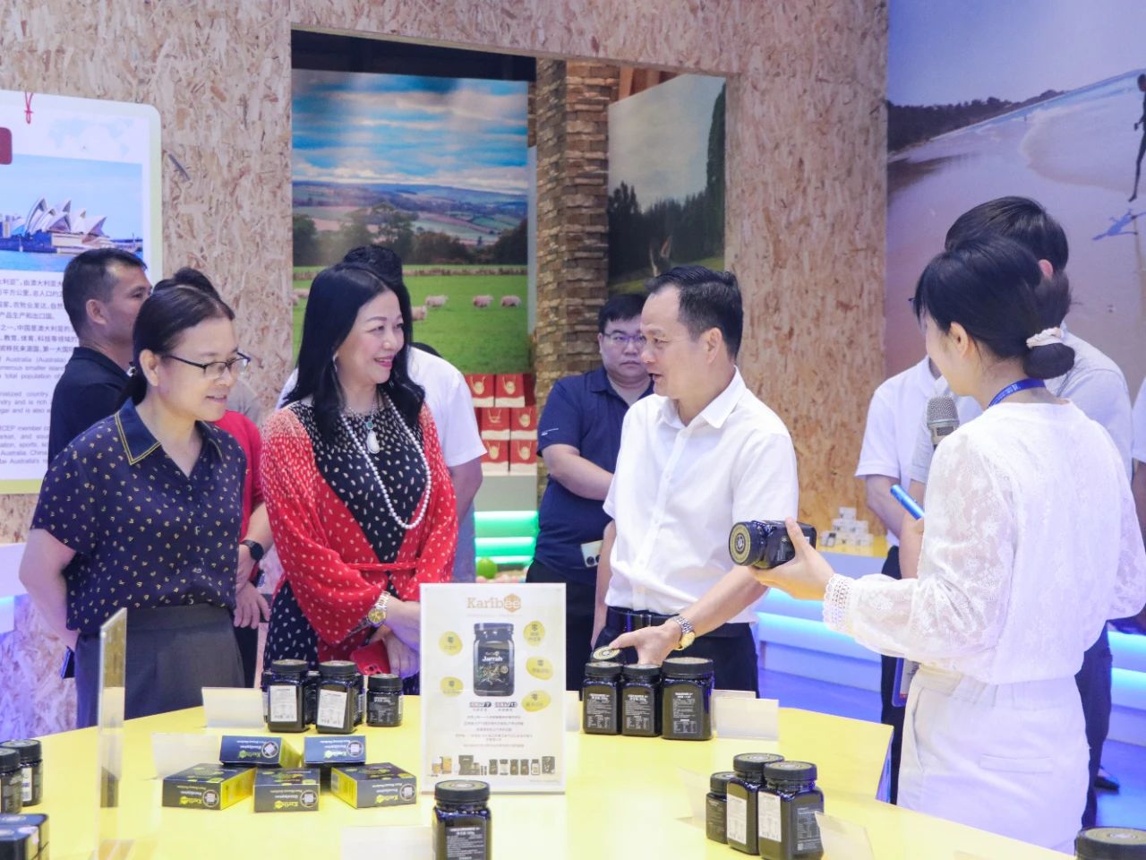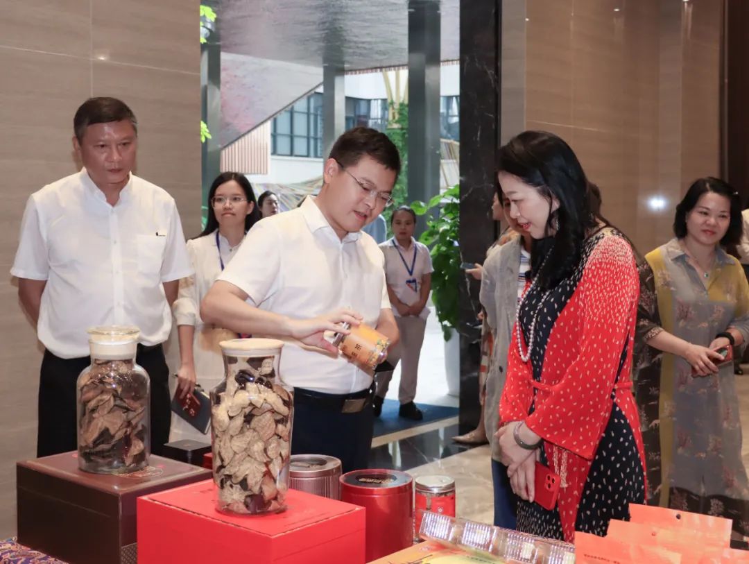在參觀廣西館的過程中,調(diào)研組對展現(xiàn)壯鄉(xiāng)風情與各類特色“桂品”表現(xiàn)出了濃厚的興趣,同時介紹欽州也有非常多的特色好物。此次到訪匯聚中心,調(diào)研組做了充分的準備,企業(yè)家們也帶著優(yōu)質(zhì)的產(chǎn)品與滿滿的誠意而來。