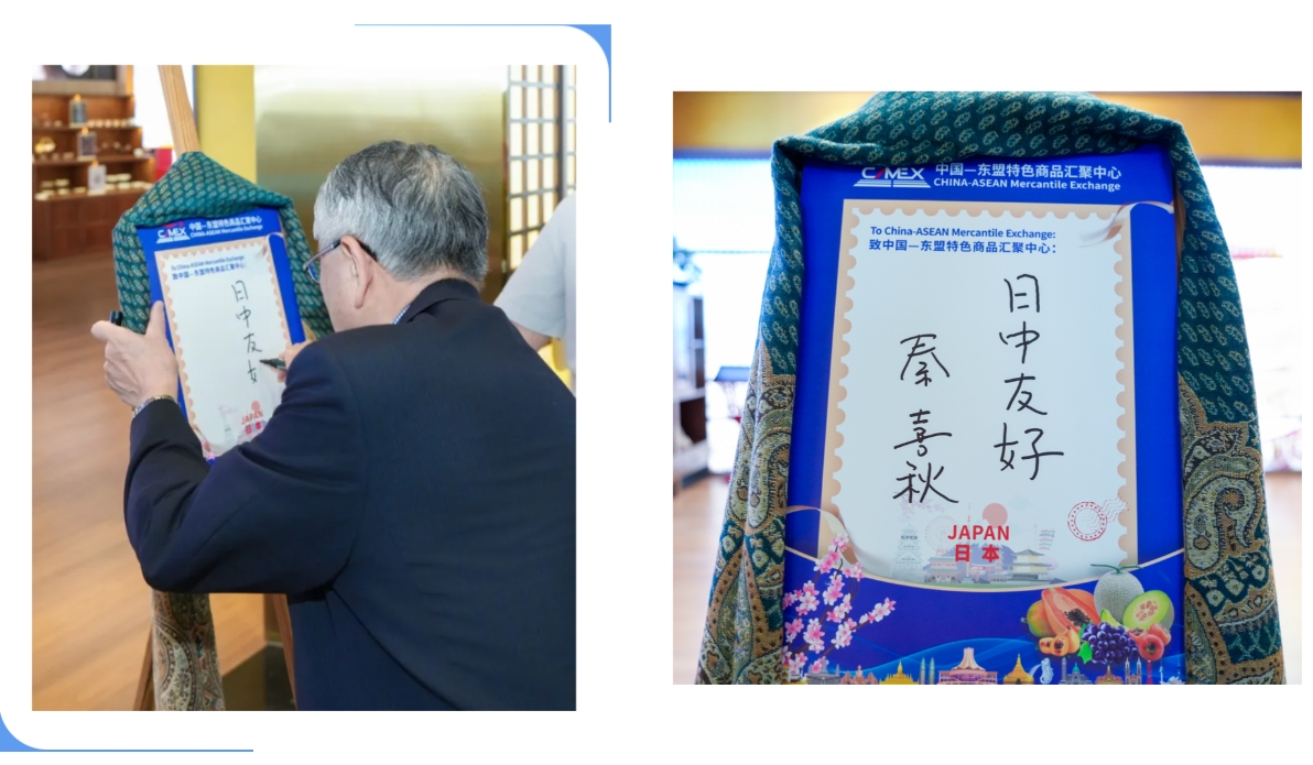 隨即,秦喜秋副會(huì)長(zhǎng)在日本館書寫下“日中友好”的寄語(yǔ),并祝愿匯聚中心發(fā)展越來越好!他表示,本次參觀考察收獲滿滿,但行程較為匆忙,仍覺意猶未盡,期待未來有更多機(jī)會(huì)到匯聚中心作進(jìn)一步溝通交流。