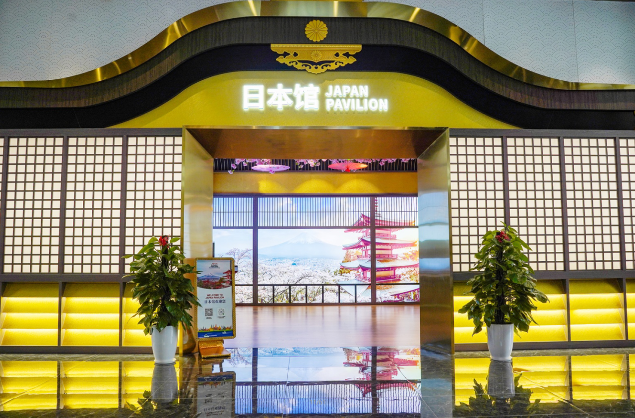 來到日本館,濃郁的日式風(fēng)情撲面而來,代表團(tuán)紛紛駐足拍照留念。作為匯聚中心獨(dú)具特色的四季主題館,日本館以“季節(jié)流轉(zhuǎn)”為設(shè)計(jì)主線,巧妙融合了日本傳統(tǒng)建筑美學(xué)與現(xiàn)代展示技術(shù),加之結(jié)合浮世繪的意境、茶道的禪意、花道的雅致,打造出移步換景的沉浸式體驗(yàn)空間,讓訪客在有限的空間內(nèi)領(lǐng)略到日本文化的精髓。