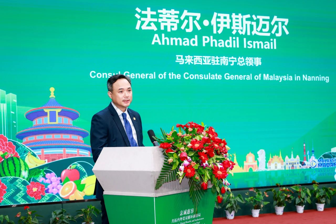 朱雁玲在致辭中表示,馬來西亞是中國—東盟水果貿(mào)易的重要樞紐,同時(shí)在推動全球清真產(chǎn)業(yè)發(fā)展中發(fā)揮著重要作用。匯聚中心既是經(jīng)貿(mào)合作的交流平臺,也是文化互動的“會客廳”,我們與匯聚中心聯(lián)合舉辦此次活動,旨在助力暢通廣西企業(yè)與東盟特別是馬來西亞市場之間的經(jīng)貿(mào)通道,讓更多“廣西優(yōu)質(zhì)好物”與“馬來特色商品”互通有無。