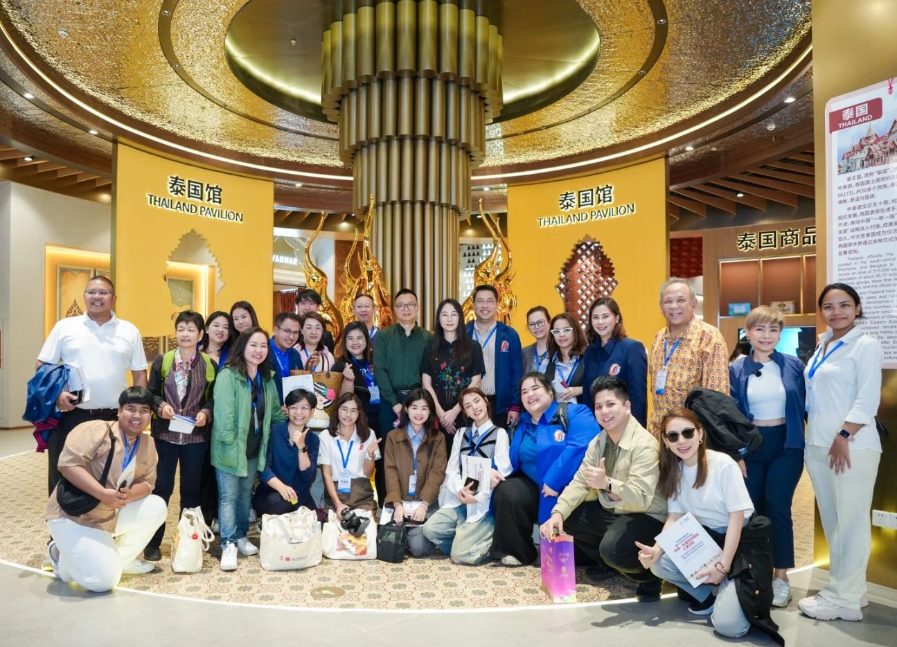 泰國(guó)媒體代表團(tuán)在泰國(guó)館參觀(guān)