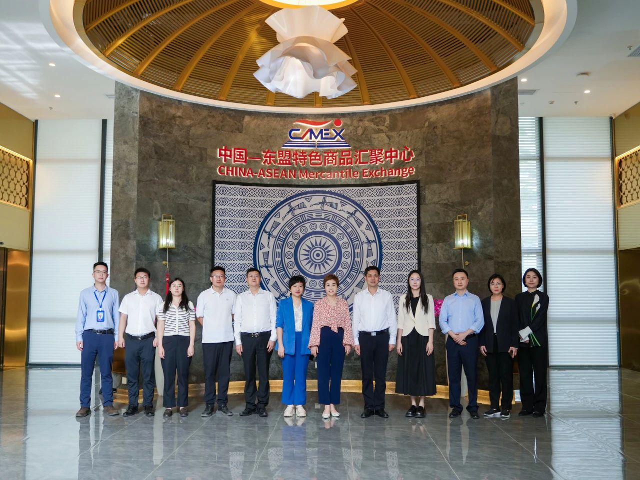 2025年4月16日,重慶市貿(mào)促會會長鄧琳一行在廣西貿(mào)促會副會長劉樹義的陪同下到中國—東盟特色商品匯聚中心(簡稱“匯聚中心”)參觀調(diào)研并進行座談交流。中國—東盟特色商品匯聚中心副總經(jīng)理盧春梅熱情接待了調(diào)研組。