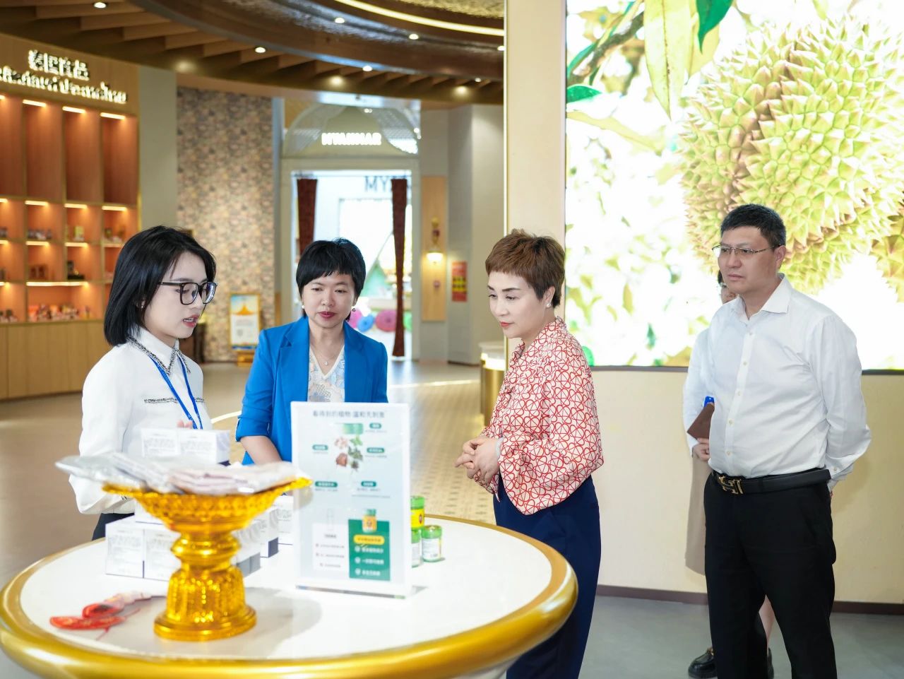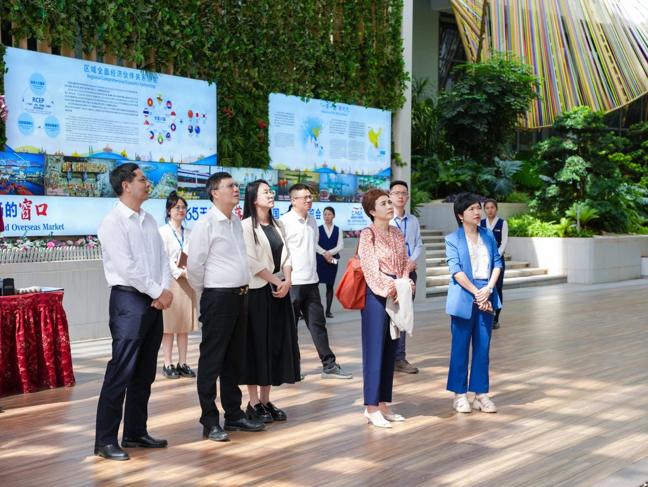 在匯聚中心參觀各主題展館的過程中,調(diào)研組詳細了解項目如何通過以“物”引“流”、以“物”促“流”的方式,搭建中國與東盟、RCEP其他區(qū)域國家乃至“一帶一路”沿線重要國家經(jīng)貿(mào)往來線上線下B2B、B2C一站式首選平臺,成為外國商家進入中國市場的首站,以及中國商家拓展海外市場的窗口。