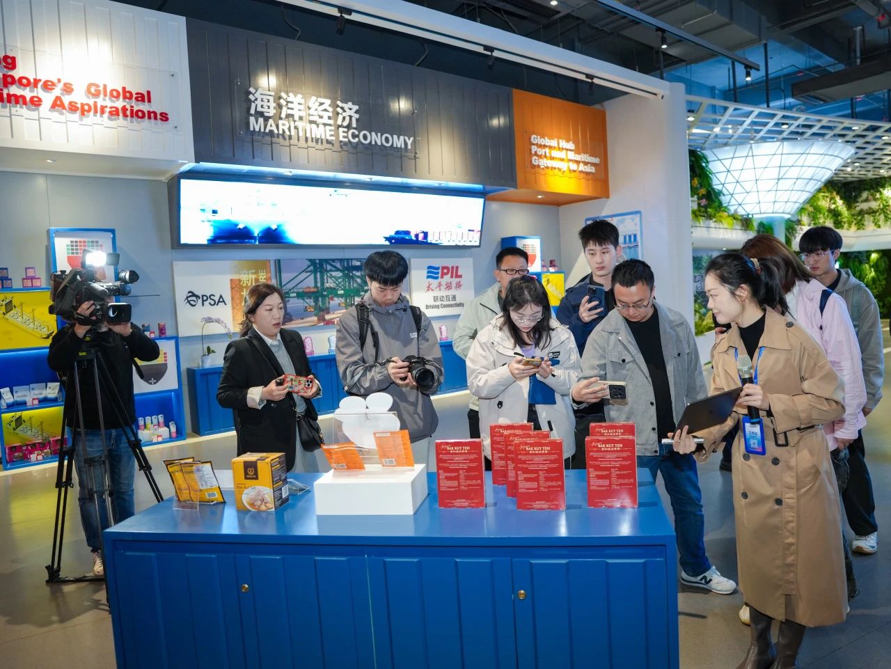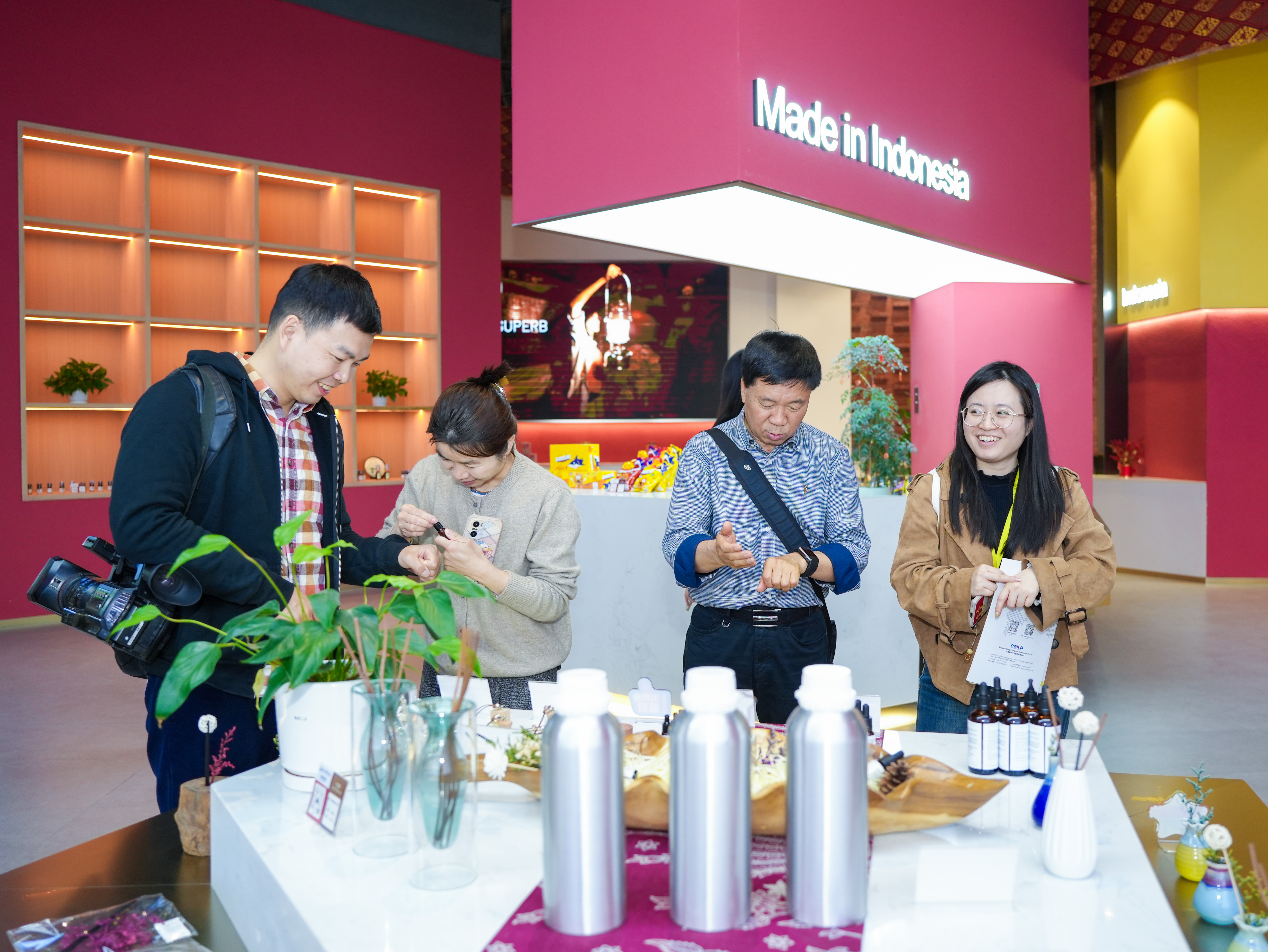 漫步匯聚中心,濃郁的東盟風情迎面而來。印度尼西亞館的“巴厘島”風情、新加坡館的“花園城市”設計......精心打造的17個主題展館,其匠心獨運的文化元素和特色商品讓采訪團眼前一亮。記者們或駐足欣賞,或交流討論,或舉起相機記錄精彩瞬間,沉浸式感受著東盟各國的獨特魅力。