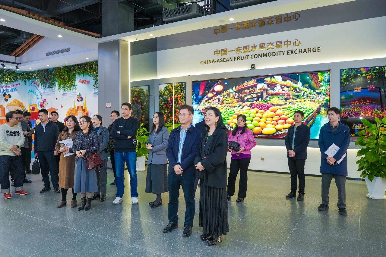 初冬時(shí)節(jié),碧空萬(wàn)里。2025年11月21日,中國(guó)食品藥品企業(yè)質(zhì)量安全促進(jìn)會(huì)廣西代表處一行蒞臨中國(guó)—東盟特色商品匯聚中心(簡(jiǎn)稱“匯聚中心”)和中國(guó)—東盟水果交易中心(簡(jiǎn)稱“水果交易中心”)參觀調(diào)研并座談交流。廣西新中產(chǎn)業(yè)投資有限公司、中國(guó)—東盟特色商品匯聚中心董事長(zhǎng)趙海燕熱情接待。