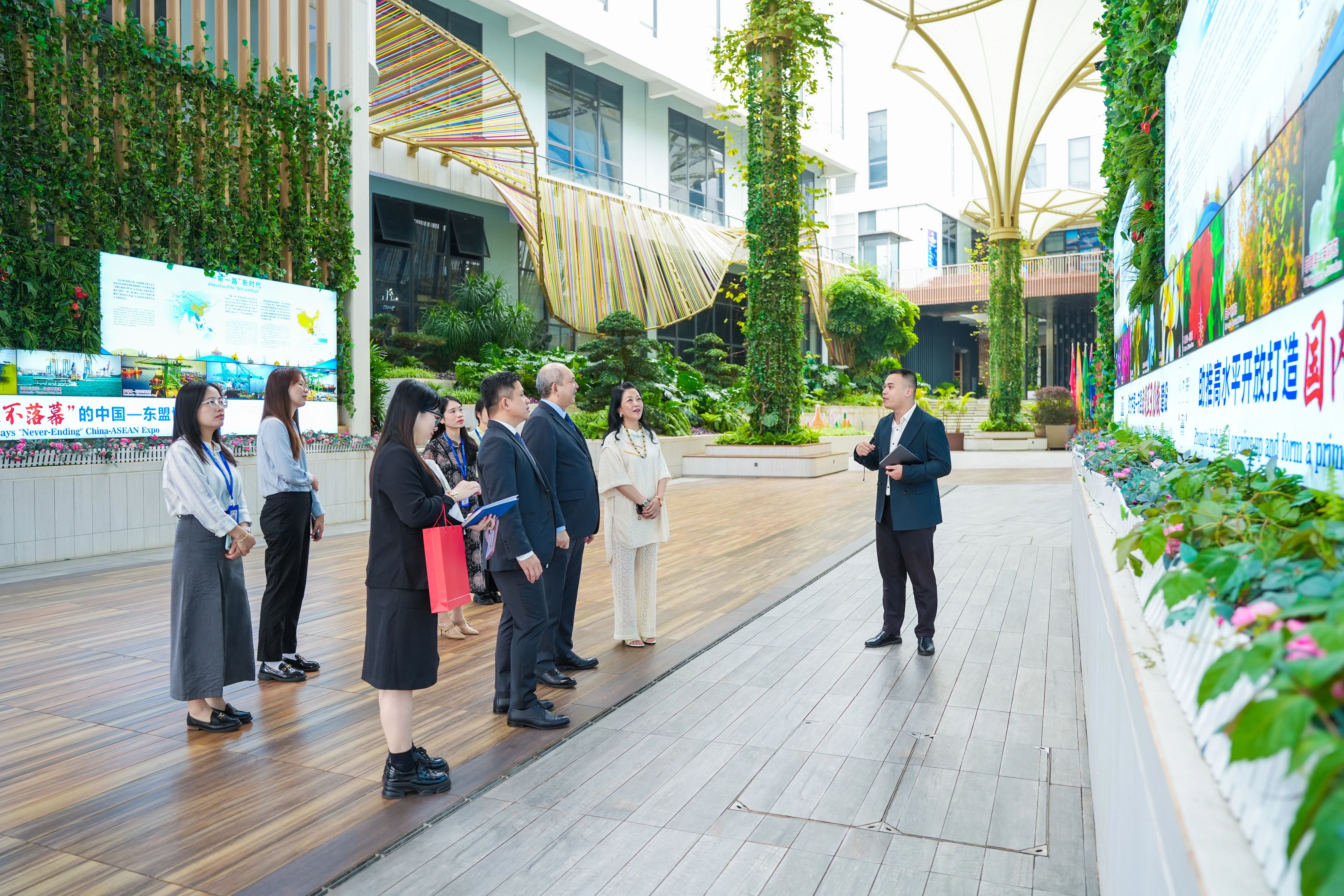 如今,斌德加總領(lǐng)事再度到訪,下車即贊:”還是那么親切熟悉”,并點出了展館較之前的升級之處。他還興致勃勃地向首次到訪的隨行人員介紹匯聚中心,同時分享了此次拜訪廣西各政府部門期間,特意將匯聚中心作為重要一站背后的考量,并囑咐他們未來要持續(xù)加強與匯聚中心的對接與合作。