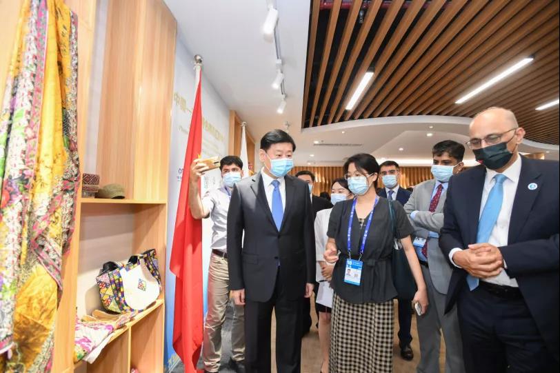 揭牌儀式結(jié)束后,王小東、莫因·哈克等還參觀了巴基斯坦商品展示區(qū)。此次入駐中國—東盟特色商品匯聚中心,巴基斯坦重點(diǎn)展出紡織品、食品、木制品以及外科手術(shù)產(chǎn)品和運(yùn)動(dòng)產(chǎn)品等主要出口產(chǎn)品。