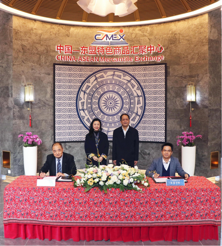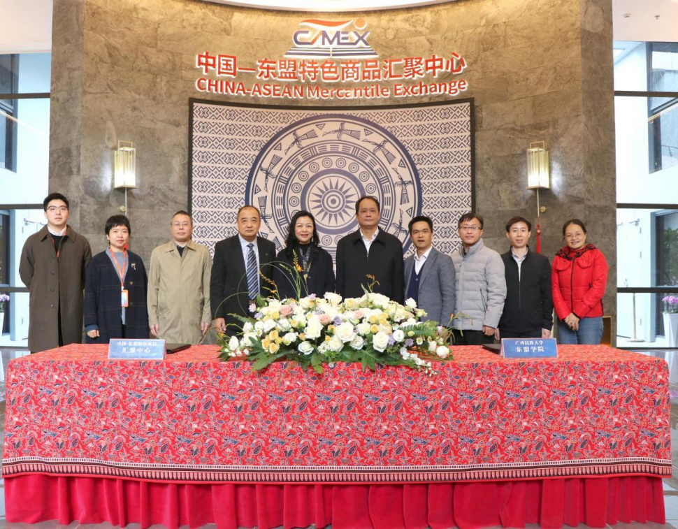 校企合作譜新篇,協(xié)同育人共發(fā)展。12月5日,中國—東盟特色商品匯聚中心(以下簡稱“匯聚中心”)與廣西民族大學(xué)東盟學(xué)院舉行了戰(zhàn)略簽約儀式。廣西民族大學(xué)黨委常委、總會計師蔡高根,廣西新中產(chǎn)業(yè)投資有限公司、中國—東盟特色商品匯聚中心董事長趙海燕出席儀式并見證簽約。