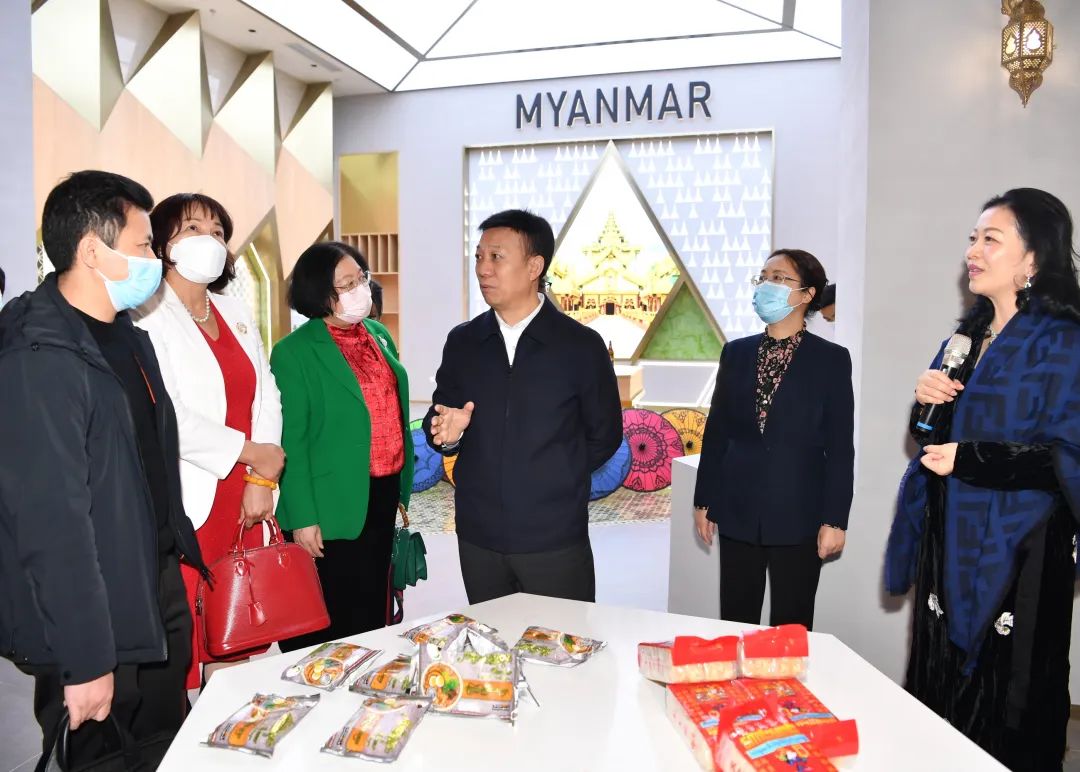 在參觀廣西館的過程中,調(diào)研組一行對展現(xiàn)壯鄉(xiāng)風(fēng)情與各類特色“桂品”表現(xiàn)出了濃厚的興趣。蔣連生書記指出梧州的六堡茶、冰泉豆?jié){和龜苓膏合稱“梧州三寶”,深受亞洲特別是東南亞各國人民的喜歡,其中六堡茶是著名的“僑銷茶”,最大的出口市場正是東盟地區(qū),希望梧州的企業(yè)能充分借助匯聚中心這一重要平臺將國際市場做大做強。