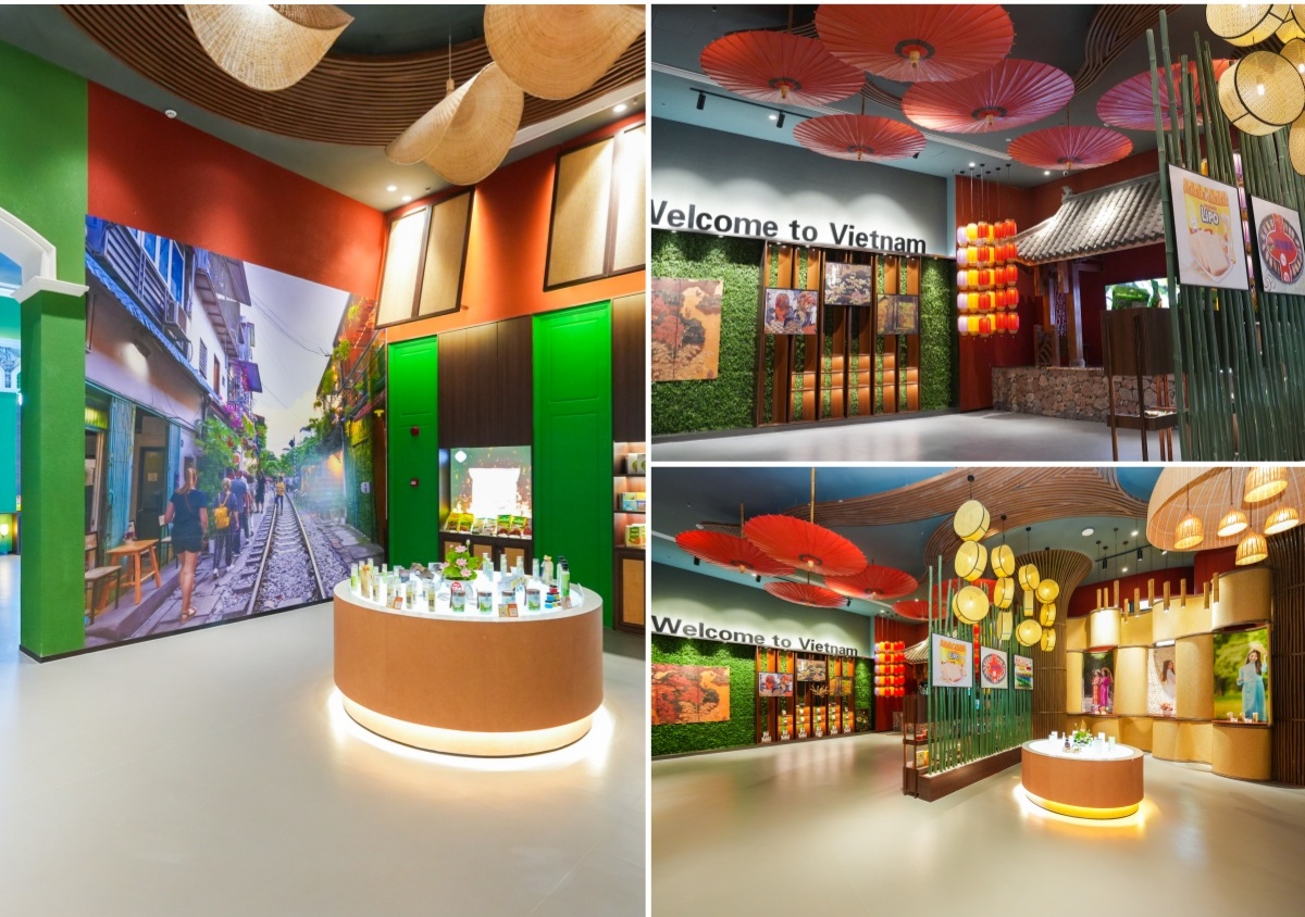 匯聚中心匠心打造了18個(gè)獨(dú)具特色的文化主題館。其中,越南主題館巧妙融入蓮花、竹子、戲臺(tái)、燈籠、梯田等越南經(jīng)典文化元素,充滿地域特色的建筑細(xì)節(jié)與裝飾風(fēng)格相得益彰,讓到放者仿佛置身越南街頭。